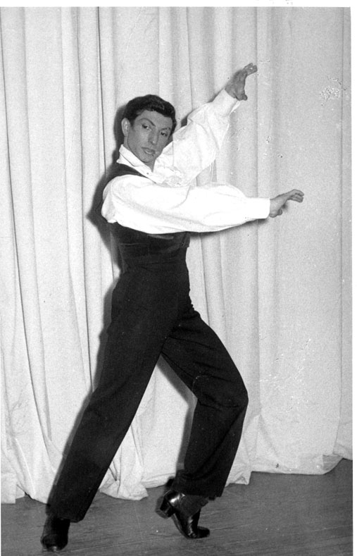 Un dia em va dir: – I per què no vols ballar? – Sí, m’agradaria molt, però… – Bé, doncs posa’t. Em va respondre, i amb mitjons i amb uns pantalonets així [ ens marca l’acabament del camal, a l’alçada de sobre genoll] em vaig posar a la barra i ell m’anava dient: – Bueno, muy bien, muy bien! Però, el meu pare se’n va assabentar. Al cap d’un mes o dos d’anar a l’estudi, es veu que la meva mare li va dir, i va ser… [ explica la situació amb una expressió d’espant i gesticulant amb les mans]… ja t’ho pots imaginar el què va ser: un daltabaix! I sobretot perquè en aquella època todos “éramos maricones”. I amb aquest desastre, jo ho vaig deixar córrer, de fet, no em varen deixar continuar.